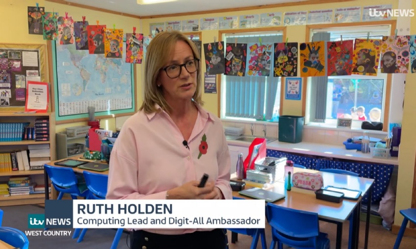As part of an ITV Westcountry News feature exploring efforts to bridge the digital divide, she was invited to highlight the exciting coding projects taking place at Colerne C of E Primary School.