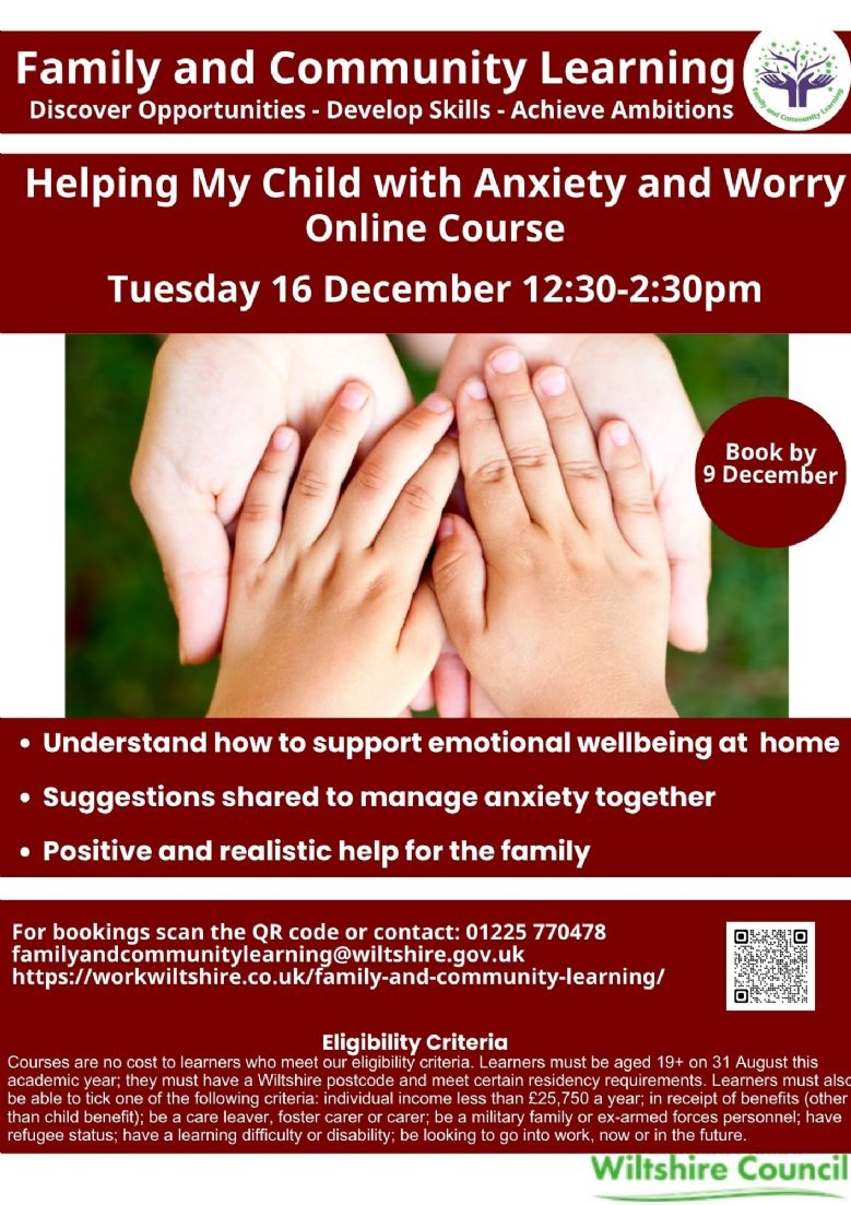 - Online Helping My Child with Anxiety and Worry 4 November 2025