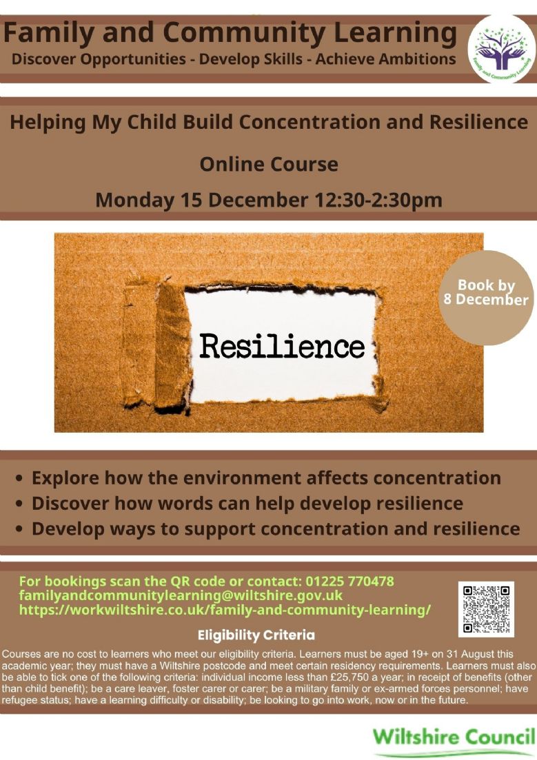 - Helping My Child Build Concentration and Resilience 29 Sept Online